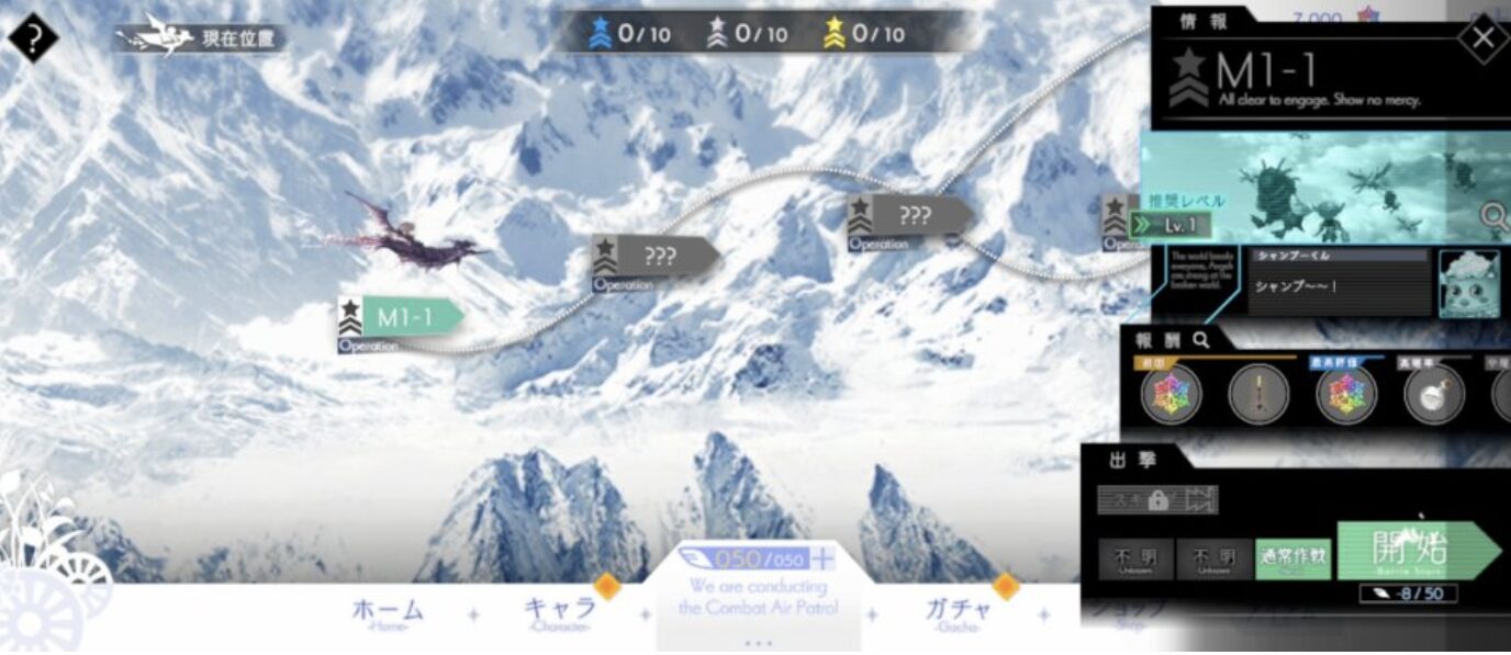 序盤はコンテンツが解放されていないので、メインストーリーを進めていきましょう。