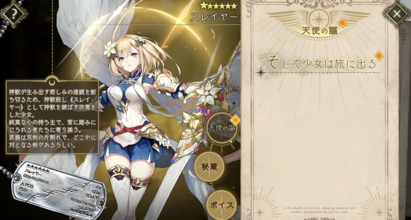 プレイヤーは命をかけて翼を手に入れた天使となった美少女たちを編成し、人を滅ぼそうとする古代遺産戦艦「神獣」に立ち向かっていきます。