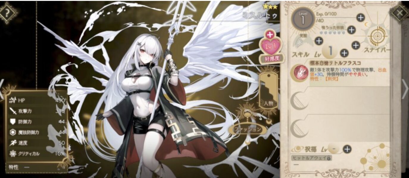 天使たちにはいろんな職業がありますが、ヒーラーを1人は育成しておくとHPが減っても回復で立て直せるので戦闘に安定感が出てきます。