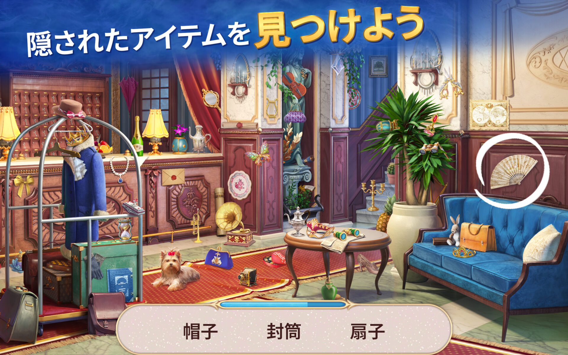 お題のアイテムを全部見つけると、次のステージに進む鍵が手に入ります。